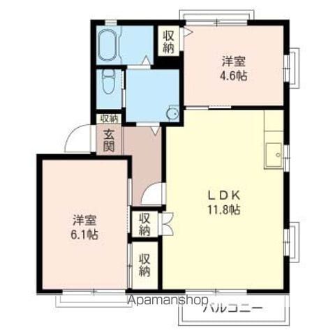 2LDK( LDK11.8畳(2階)/洋室6.1畳(2階)/洋室4.6畳(2階) ) |