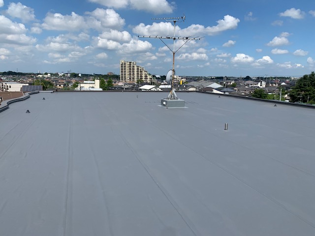 蓮田市某所3F建マンションの屋上(陸屋根)防水工事が完了しました。