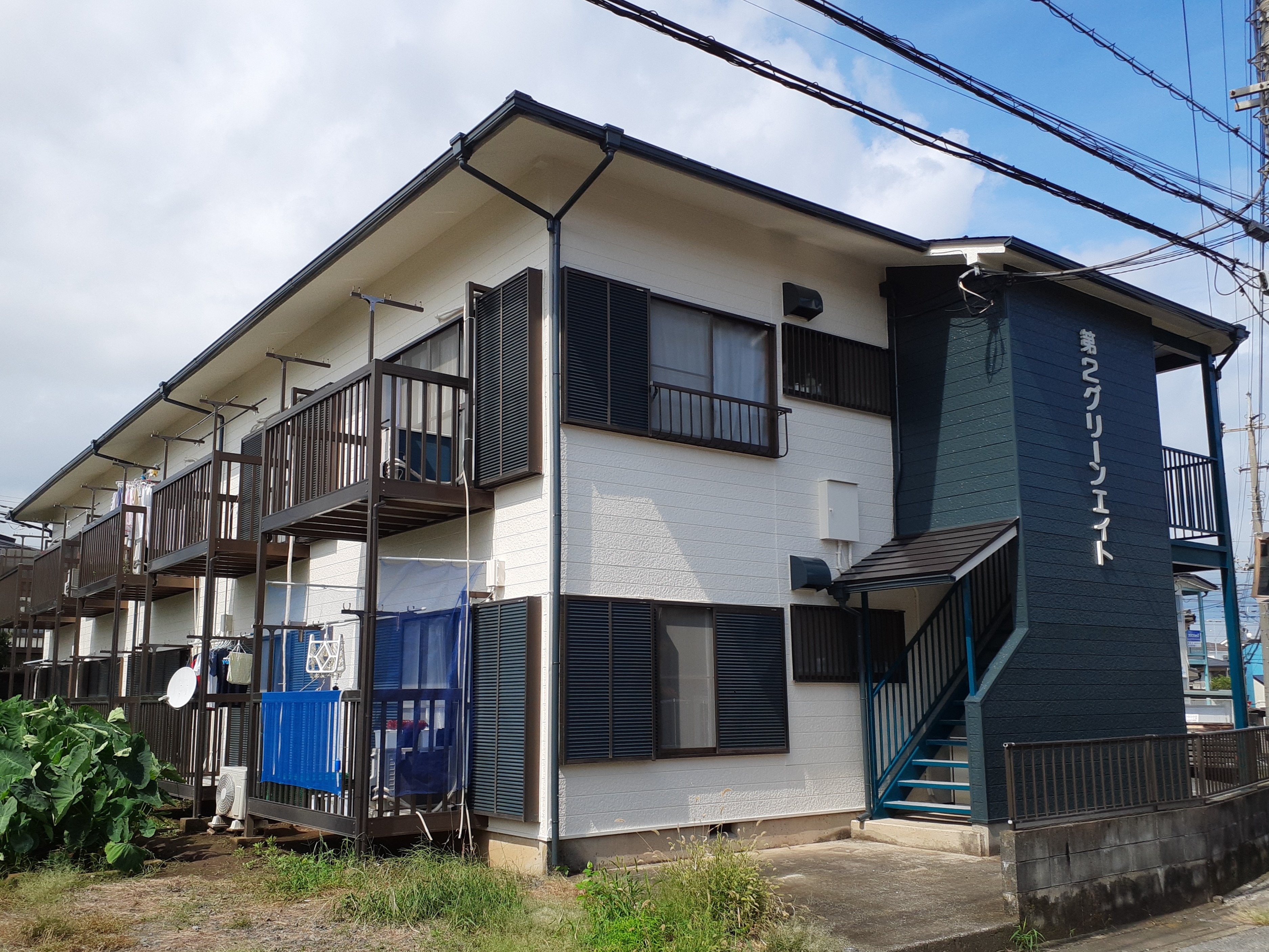 外壁塗装工事が完成した弊社管理物件のアパートに