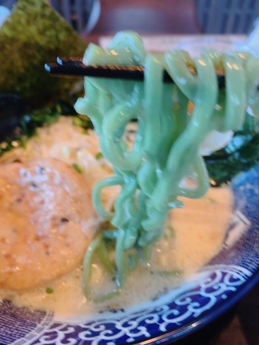 見た目も美しいですね。ほうれん草が練りこんである緑色の麺は人生初です。