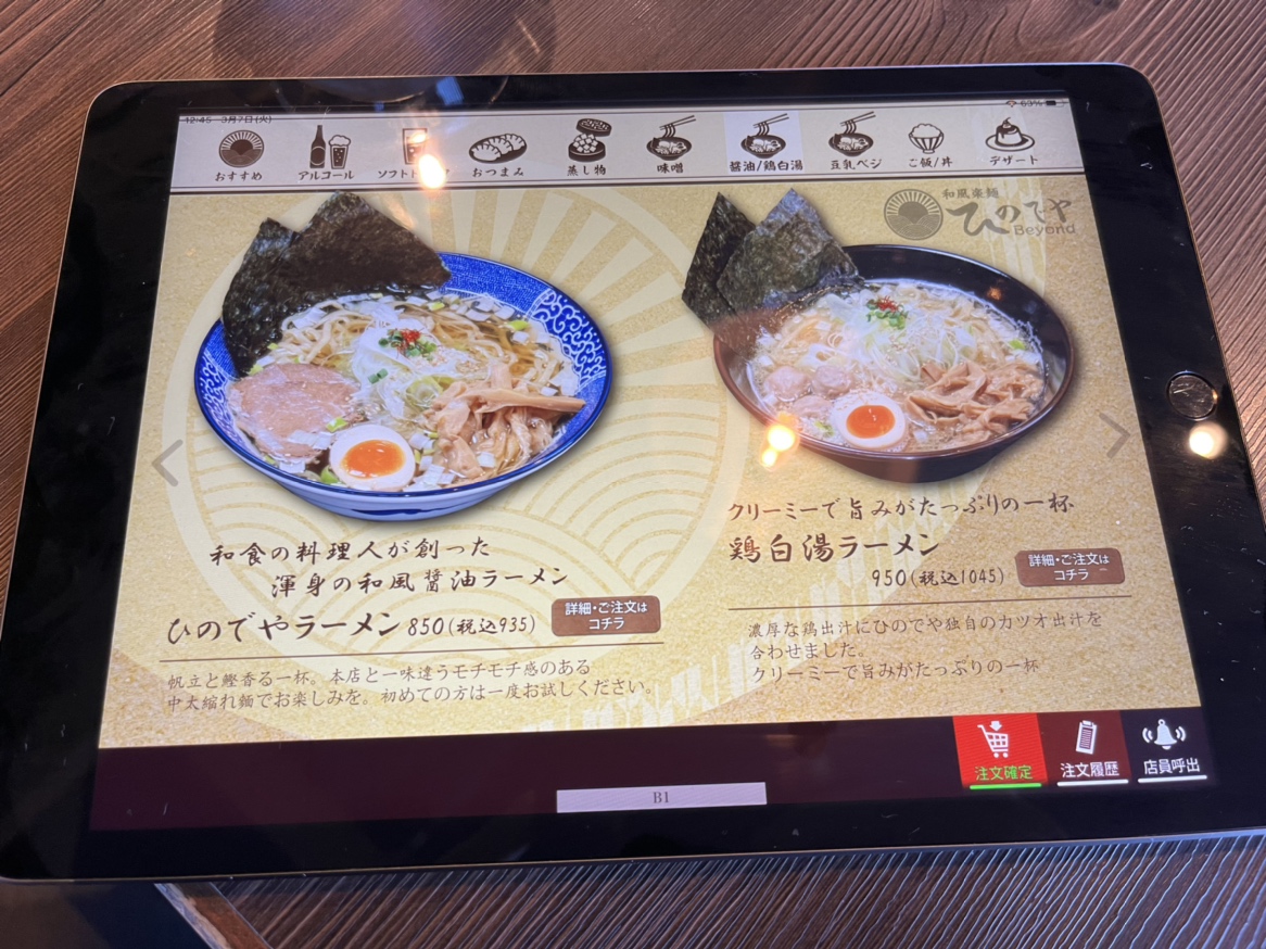 メニューはこんな感じでタブレットを使った注文方式です