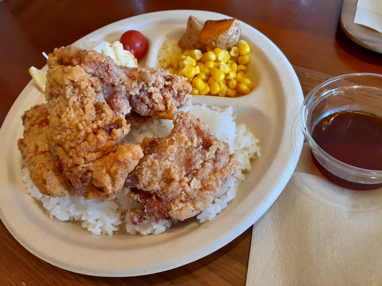 豚肉にフルーツBBQソースをからめたワンプレーとランチでした!