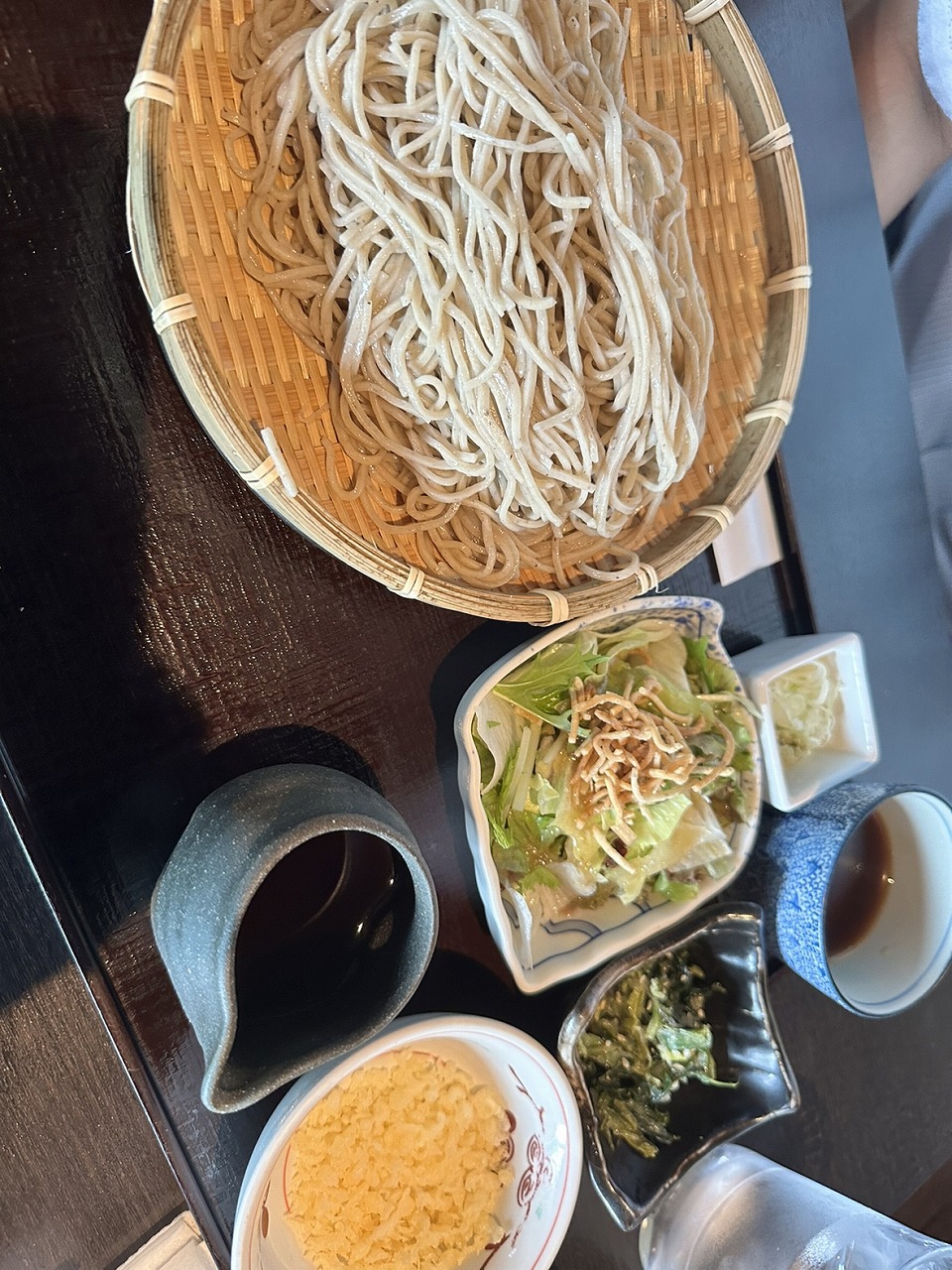 お蕎麦はコシがあってとってもおいしかったです!おそばを揚げたものがのっているサラダが好きすぎました!