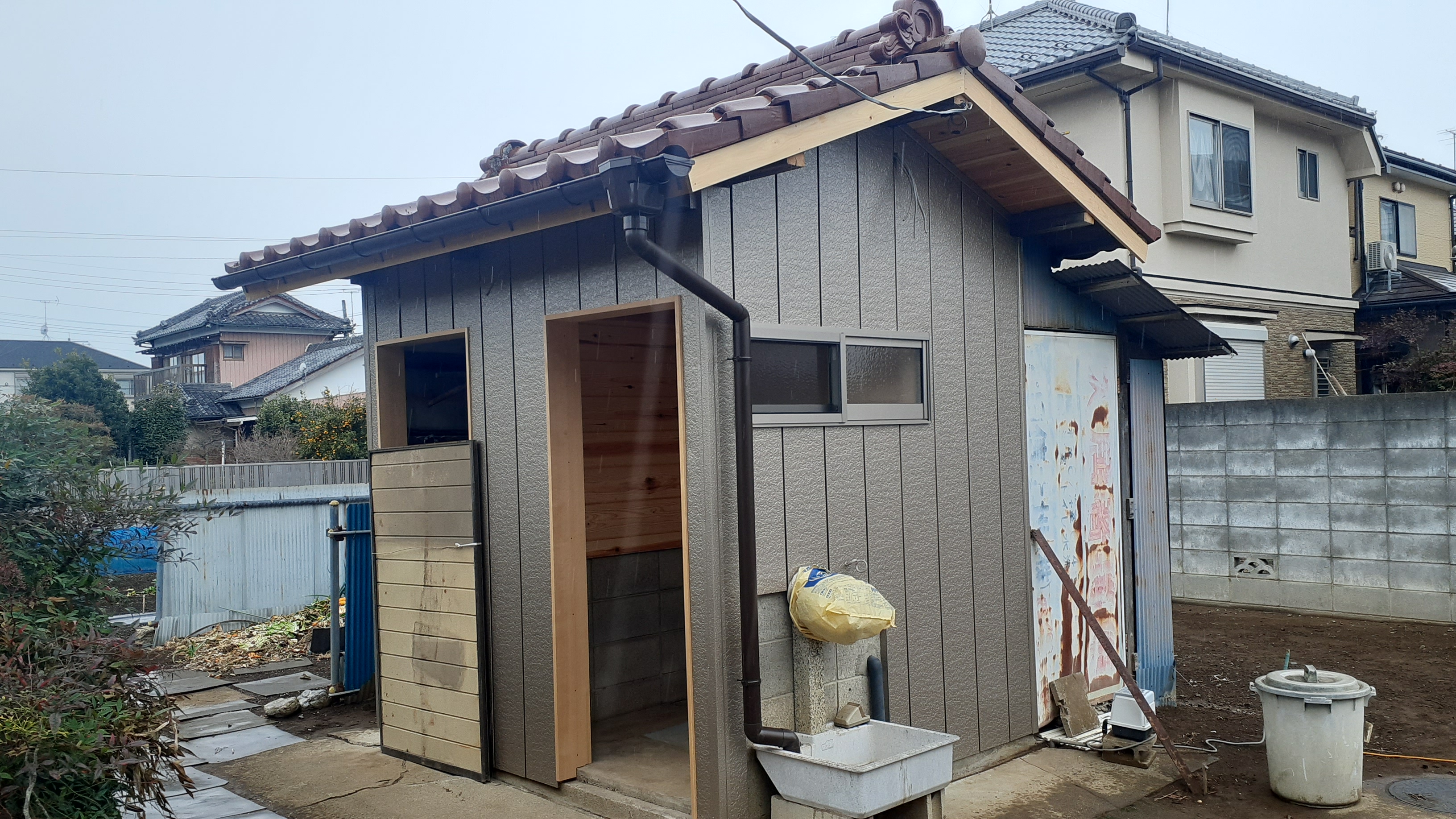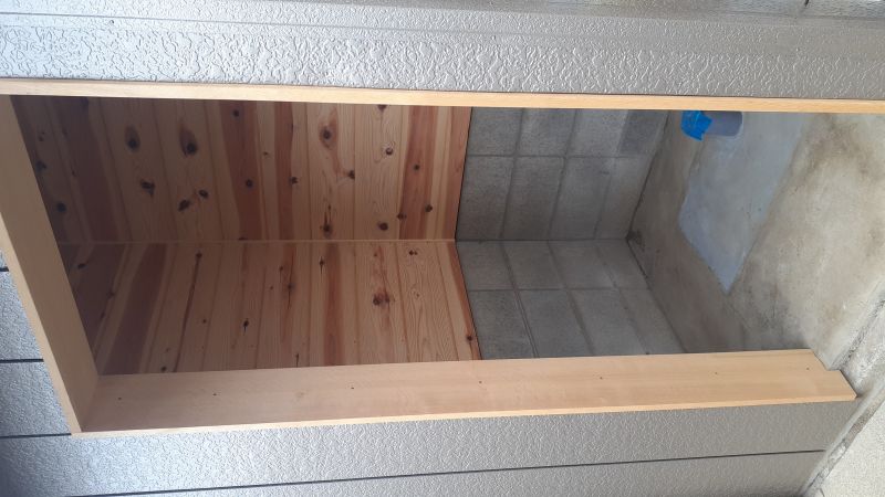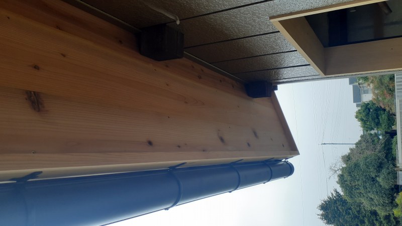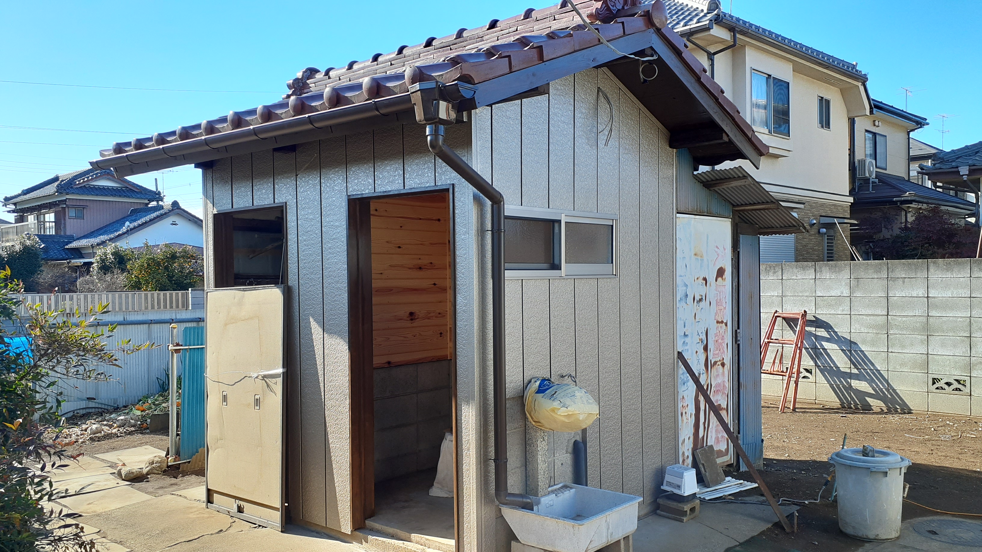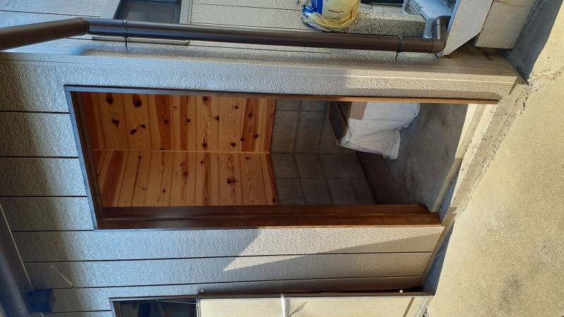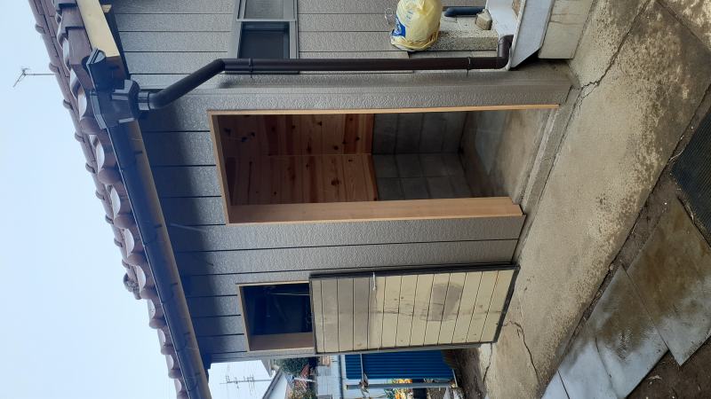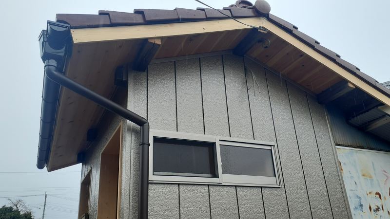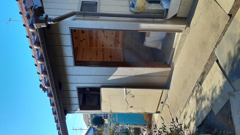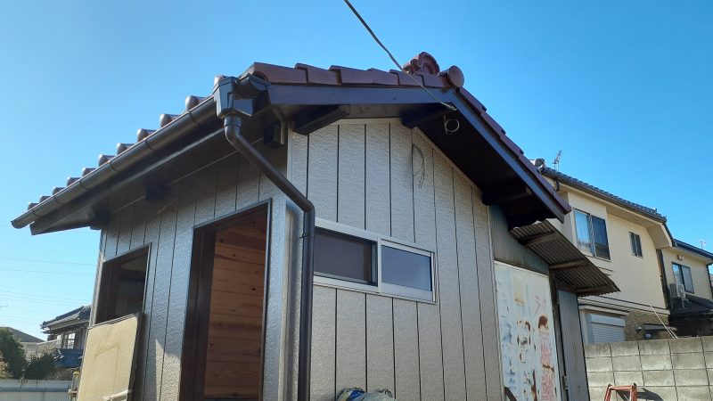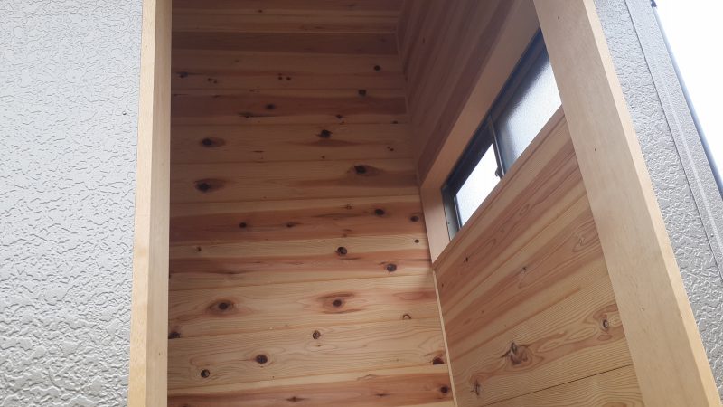 こちらは倉庫兼外部トイレの倉庫であり、「軒天」・「倉庫内部の壁面・入口枠」を