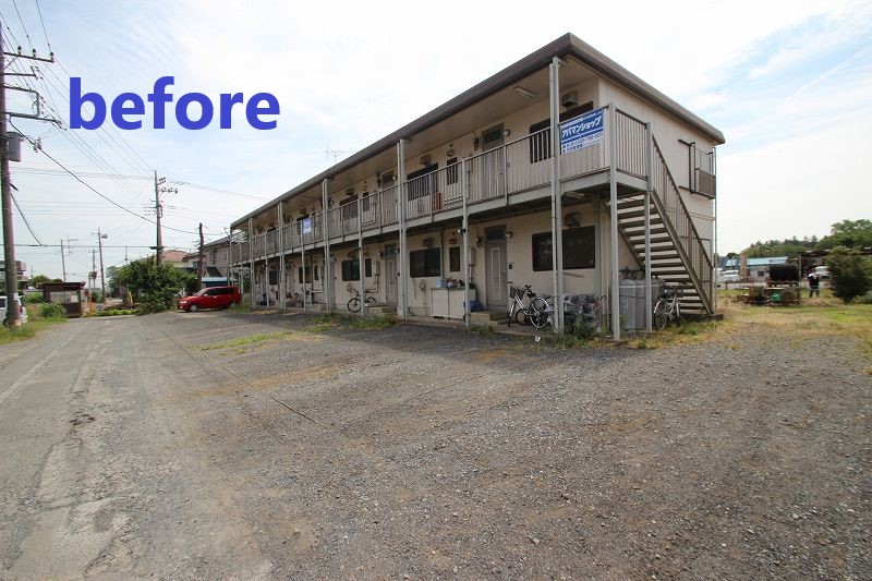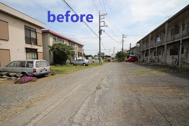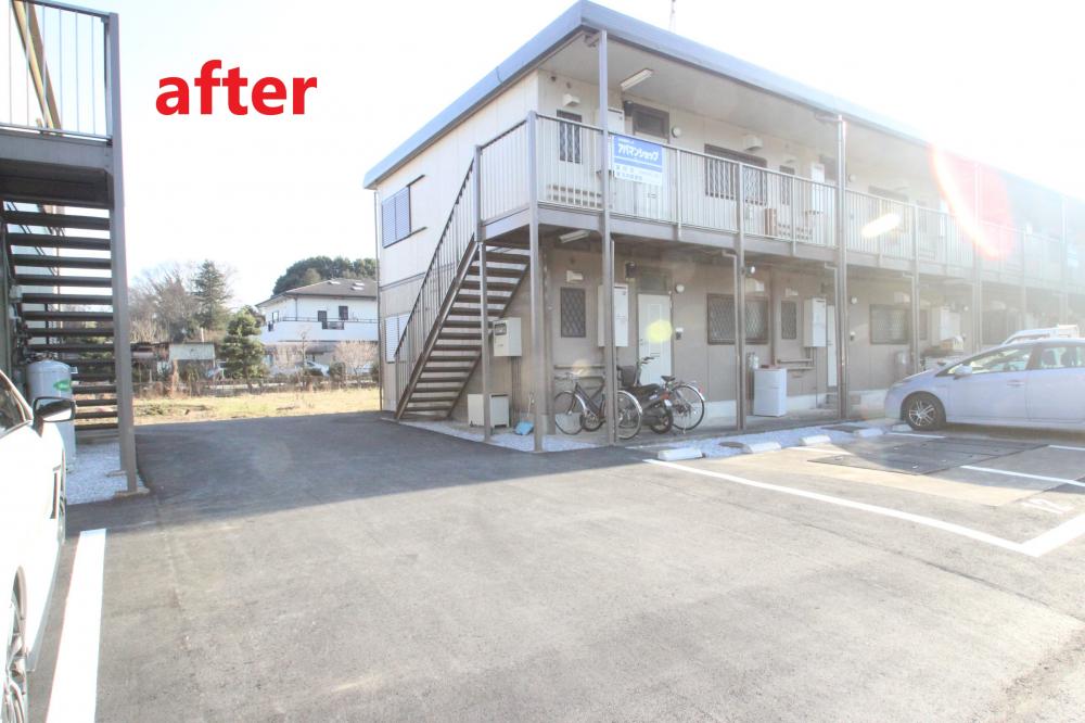 広い敷地のアパート、砂利駐車場をキレイに舗装、さらに同じ敷地内の老朽化・全空室となった建物を解体し、追加で駐車場を造成!敷地全体が見違えるようにキレイになりました!