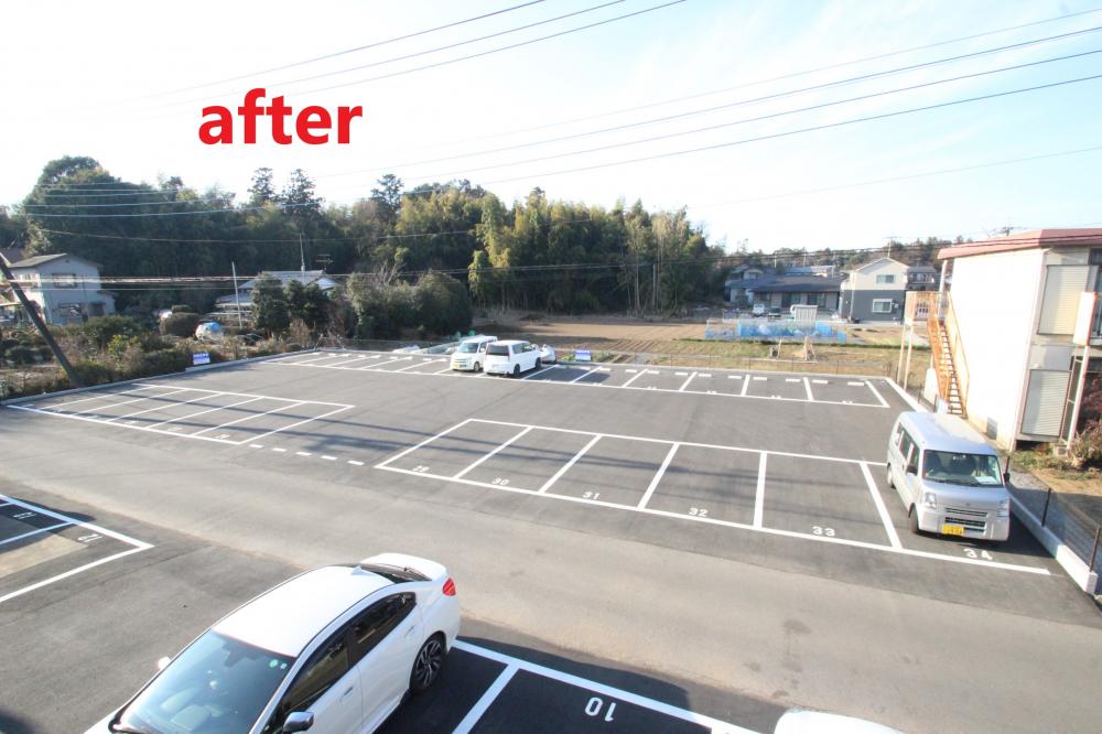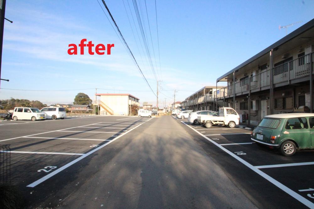 敷地内駐車場を舗装、さらに老朽化した棟を解体しキレイな舗装駐車場へ♪