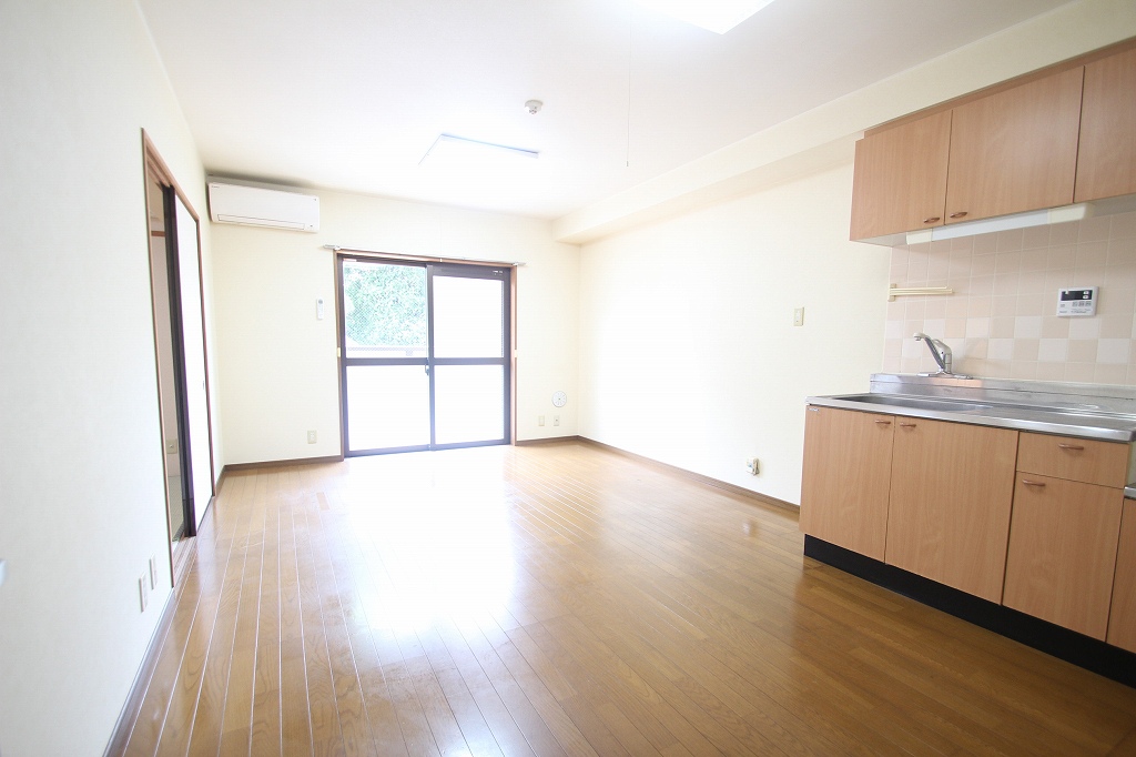 かなり広くて開放的なリビングには収納スペース多めの広々キッチンがございますよ