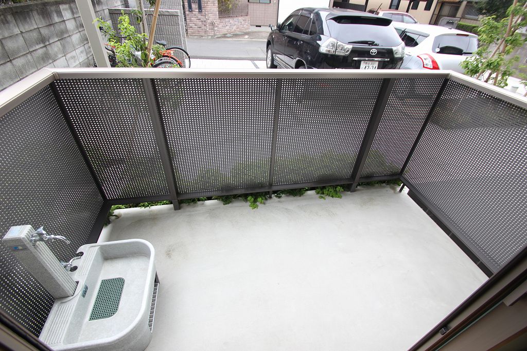 庭はペットの足洗い場もありとっても実用的なものになってます