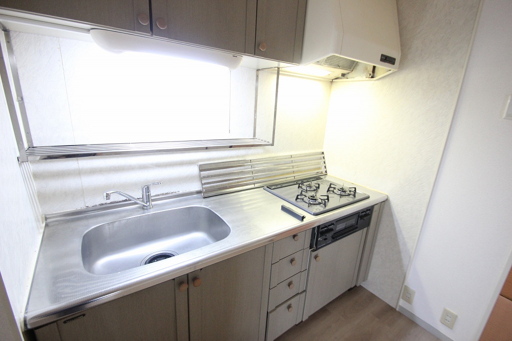 極めつけは3つ口ガスコンロが最初からついてるんです