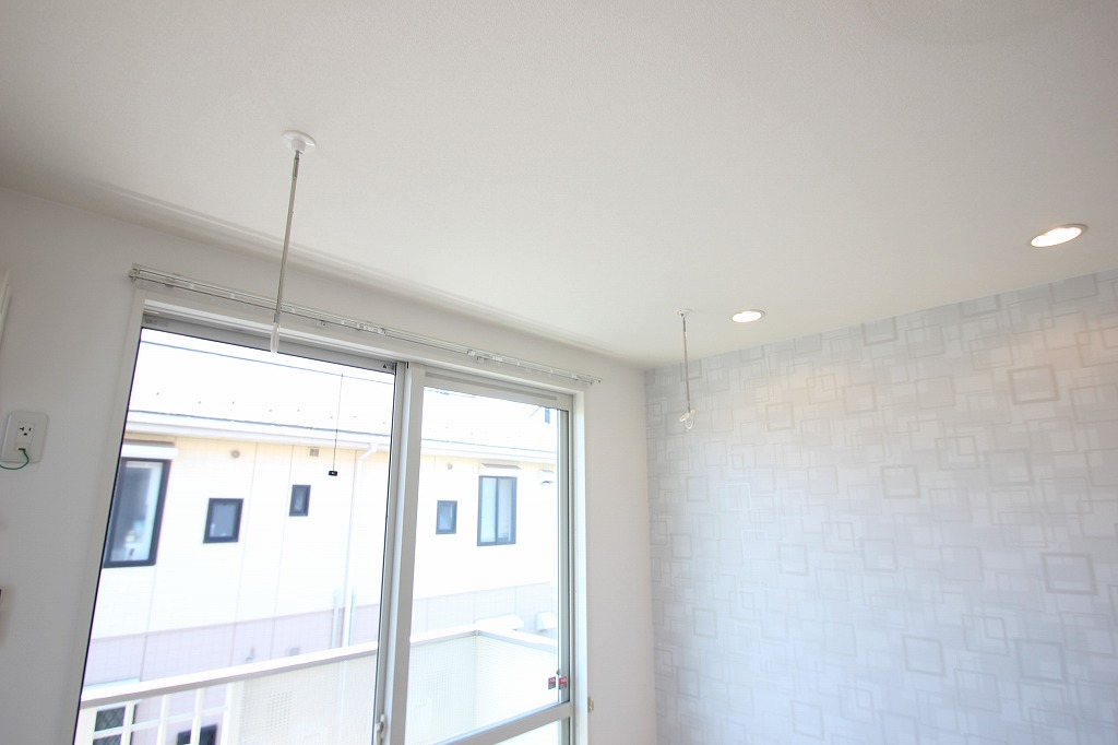 浴室乾燥の他に室内物干しかけもあるので部屋干しも可能です
