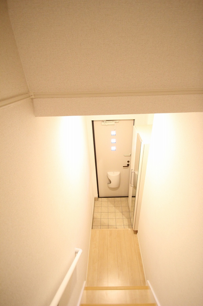 このお部屋は部屋が2階にあって、玄関が1階にあるタイプのお部屋ですね。