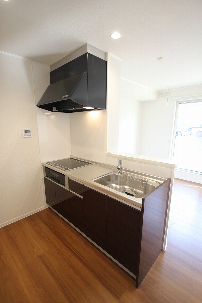 キッチンはIHのシステムキッチンが備え付けで調理スペースも広いですね