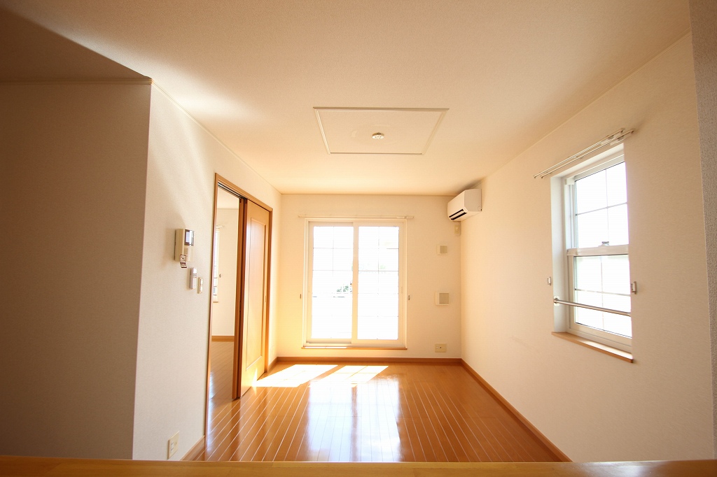 エアコンが付いており、こちらからベランダに出ることが可能です。