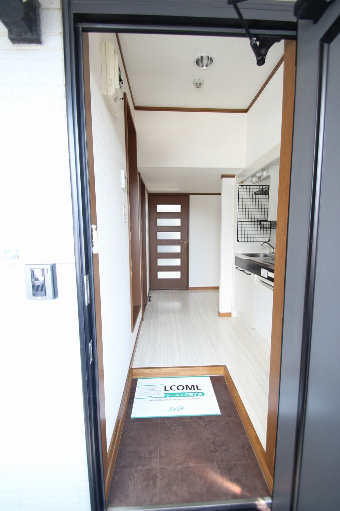 玄関を開けると白を基調とした床に、建具はブラウン系でこの配色が個人的には好きです