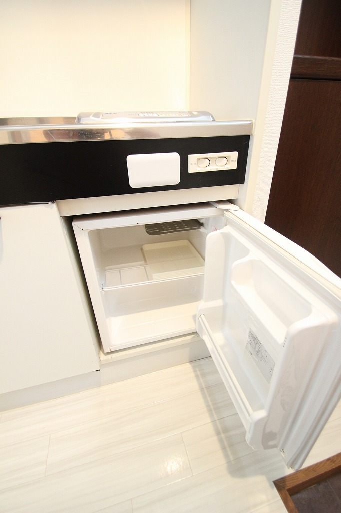 コンロ下にある小型の冷蔵庫も飲み物を冷やす程度なら十分な広さですね