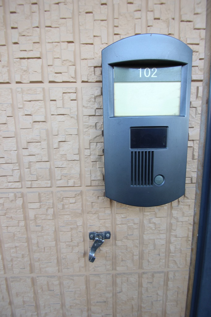玄関のインターホン下にはリード用のフックが備え付けられており、