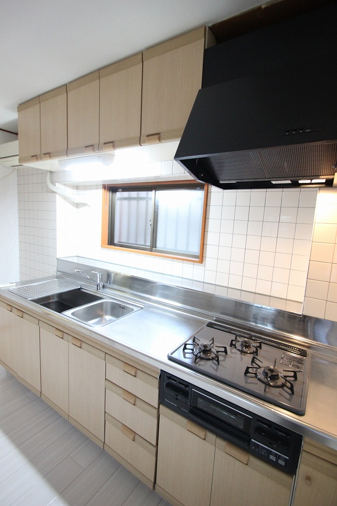 キッチンですが、システムキッチンですのでご自身でガスコンロを用意していただかなくて平気です。
