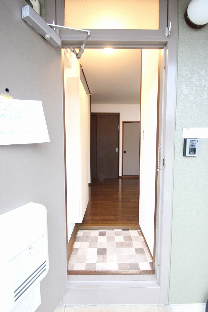 扉を開けると玄関がモダンなタイル調になっていますね!