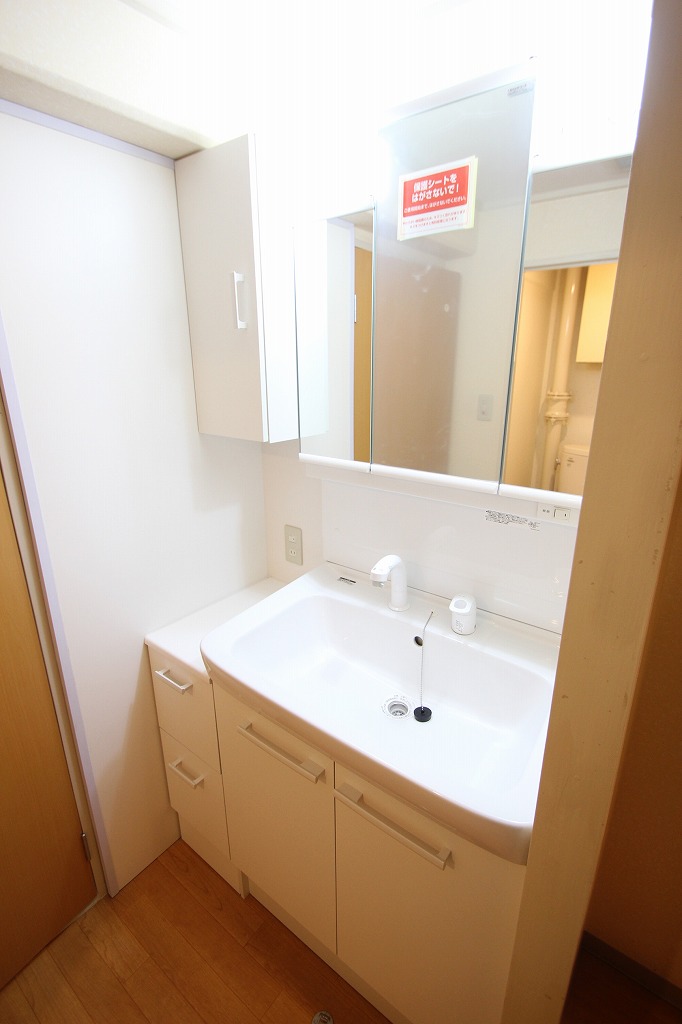 洗面台も新しいものにかわっており、シャワードレッサーの幅が広い使いやすいタイプになっておりますよ
