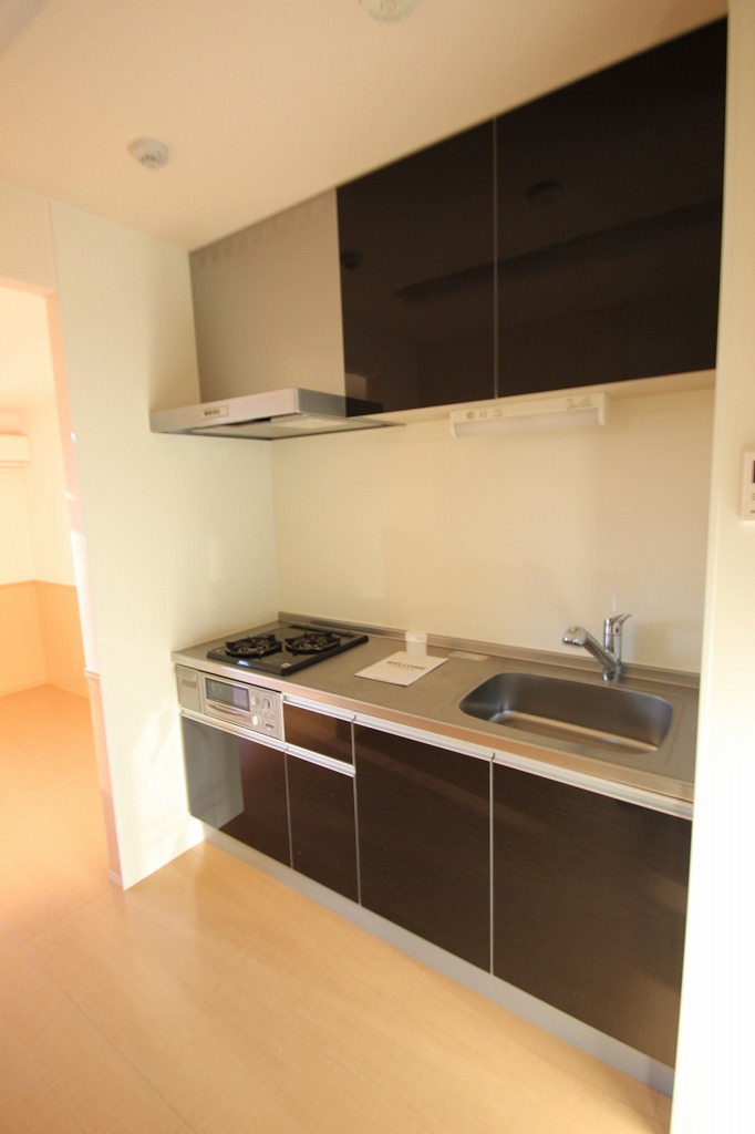 キッチンはシステムキッチンですのでガスコンロが付いております。