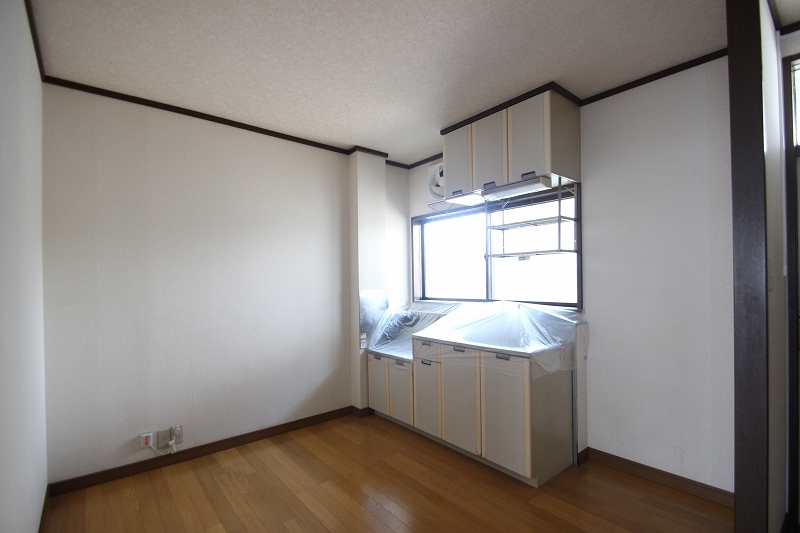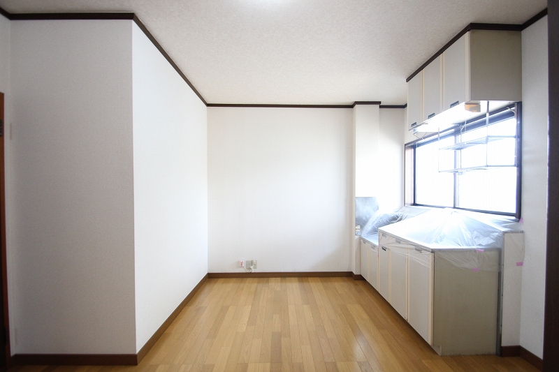 キッチン横には冷蔵庫、後ろには食器棚を置くスペースもあります
