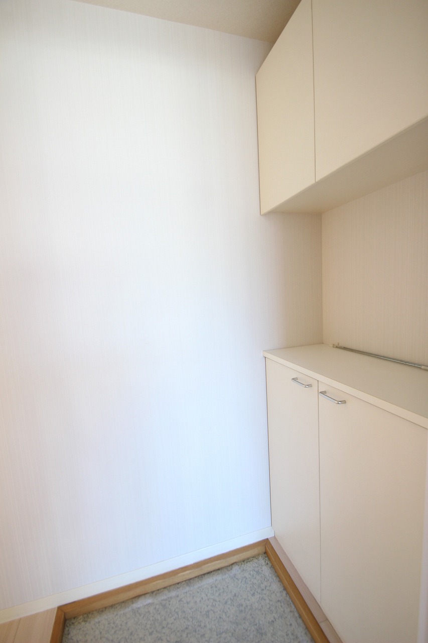 玄関を開けると靴箱がありますが上下段と別れており、大分靴が入りそうですね!