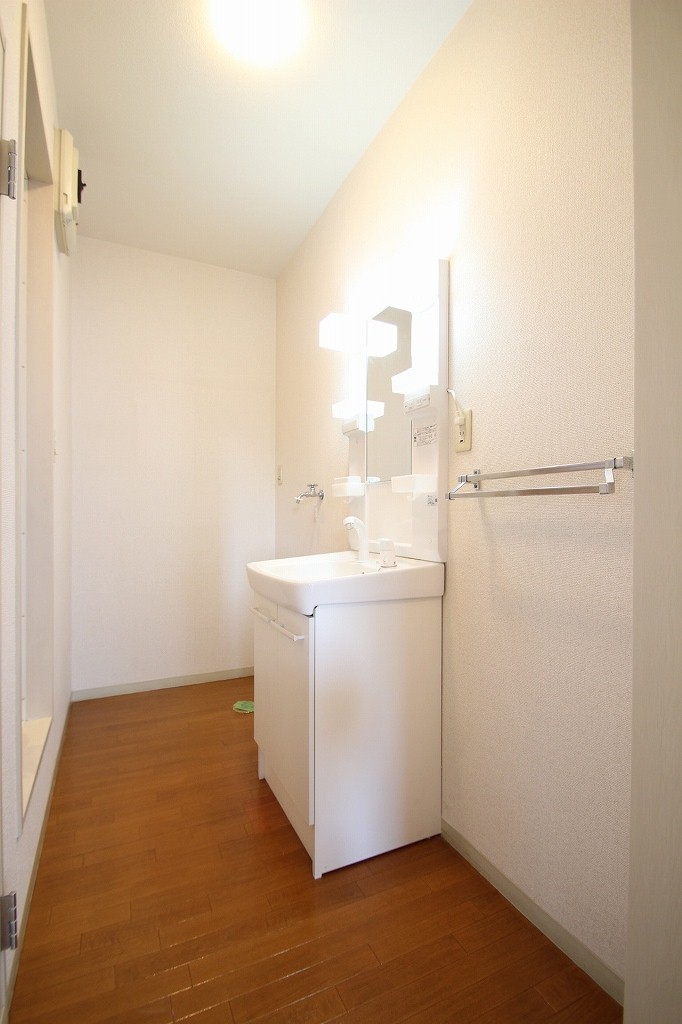 脱衣所は横長になっていて洗濯機も結構大きいものが入りそうなのに加え、