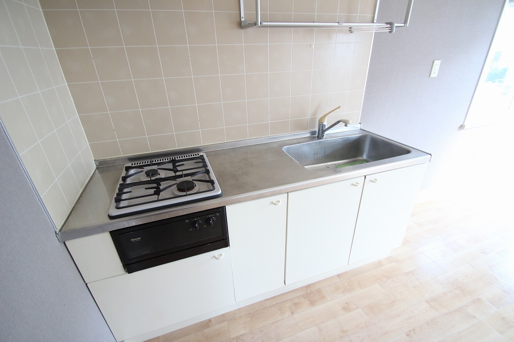 キッチンは二口のシステムキッチンにグリルが付いているタイプのものとなっております
