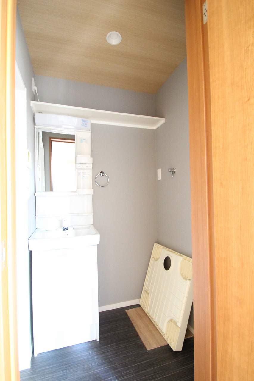 ※建築時の写真ですので配管が見えていたり洗濯機置き場が起立していたりしますが、