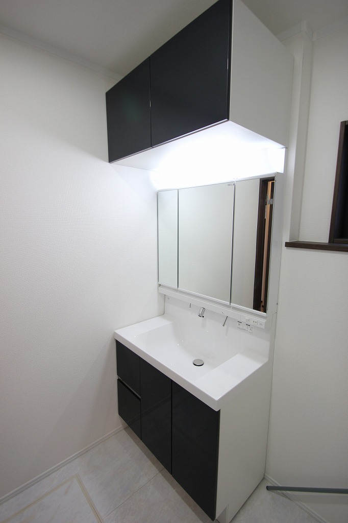 洗面台は珍しい上と下両方に収納が付いているタイプのものですね