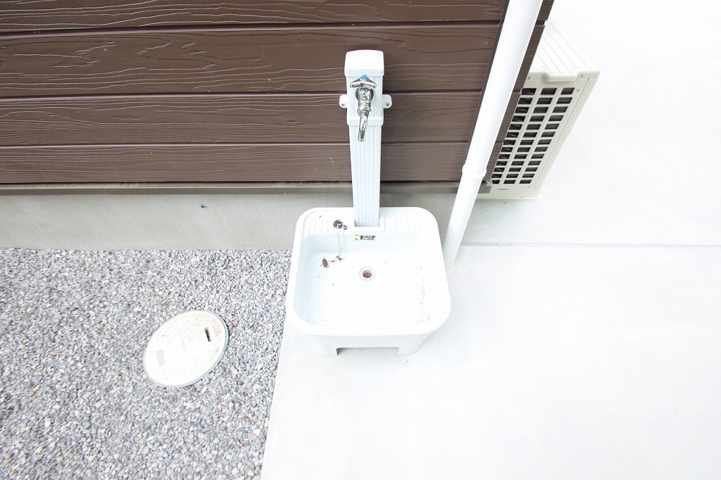 建物の外側には水道があり、外でのプール遊びや洗車の際の外水栓があります!