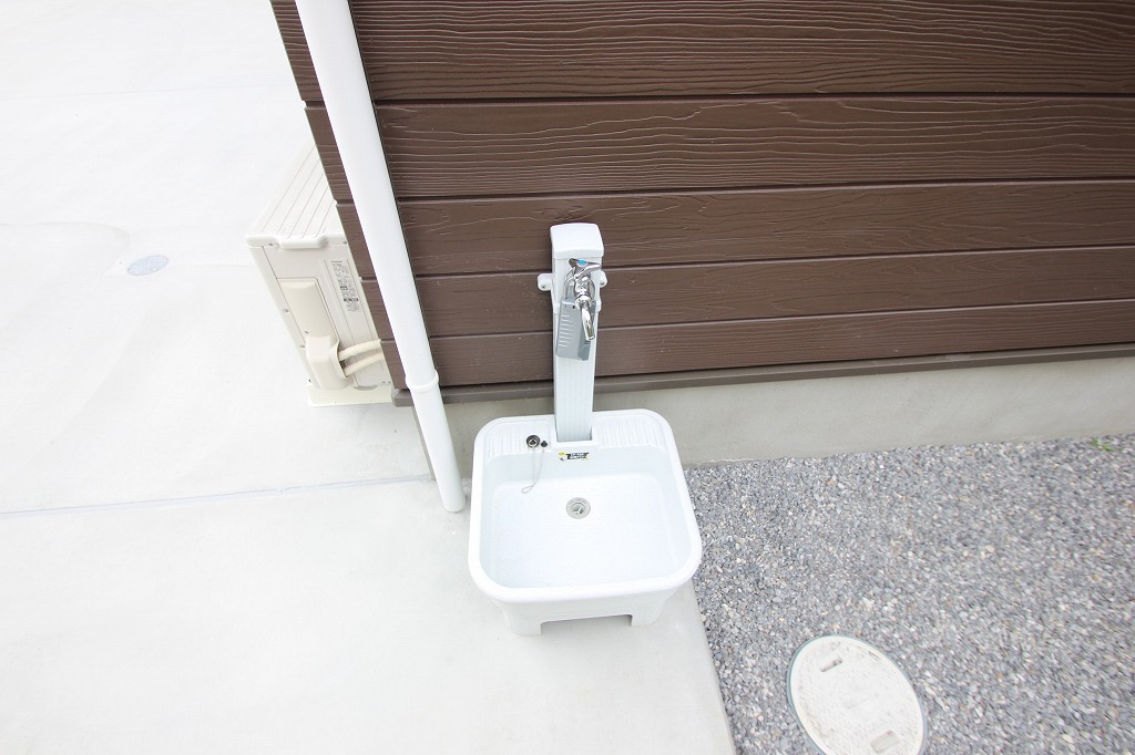 外には水道があるので屋外で洗いたいものがあるときや洗車の際などは便利ですね