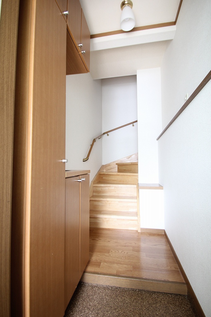 外の階段を上り扉を開くと玄関がありその先にはまた階段!