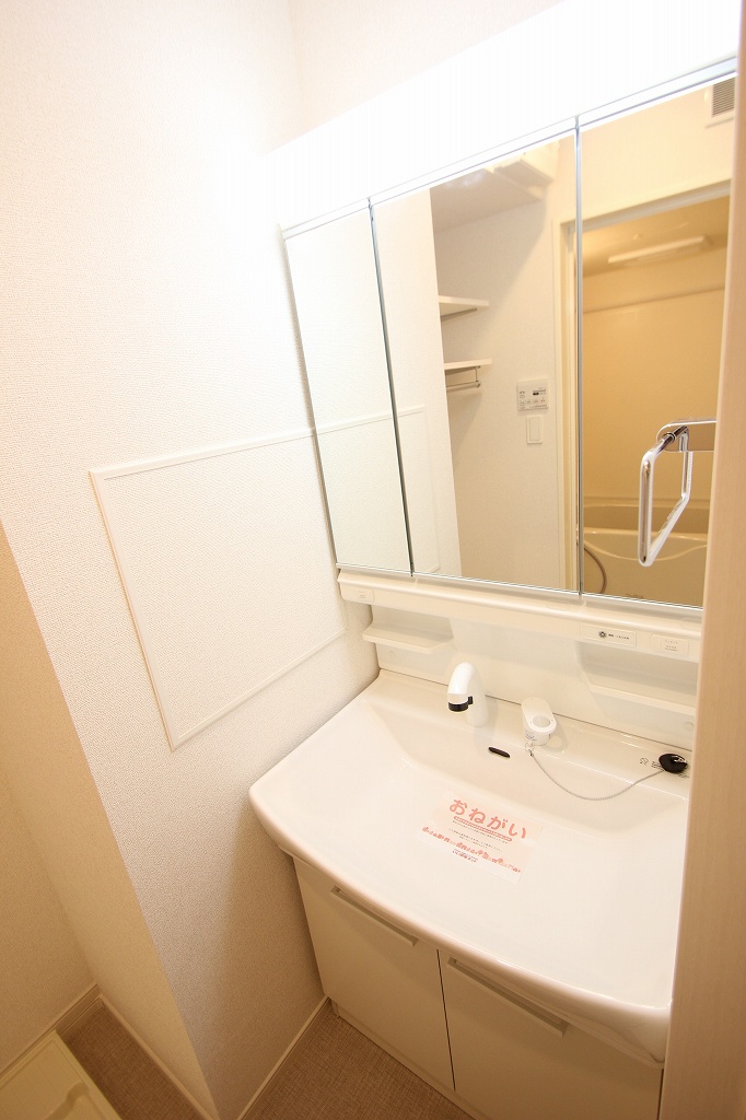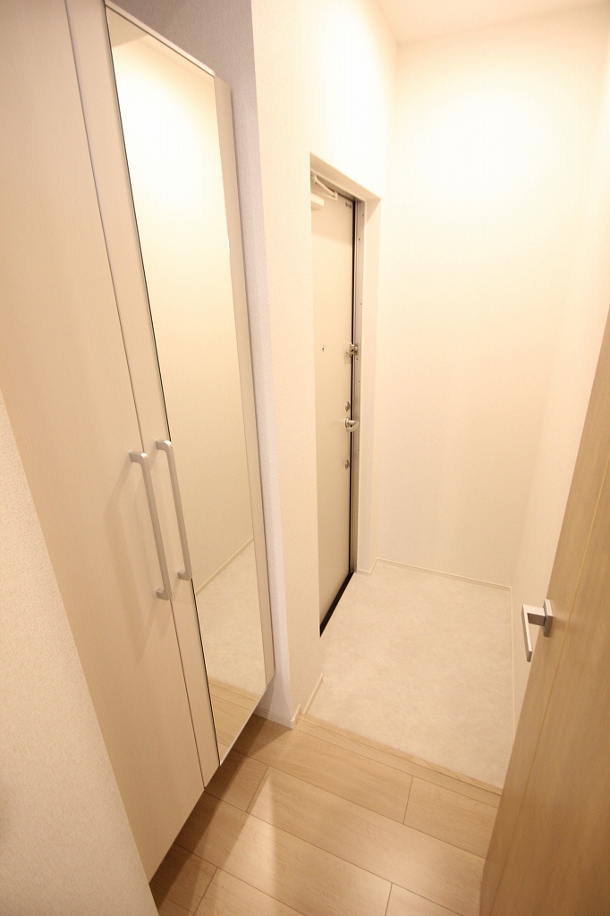 こちらは玄関となっており下駄箱には姿見が付いております。