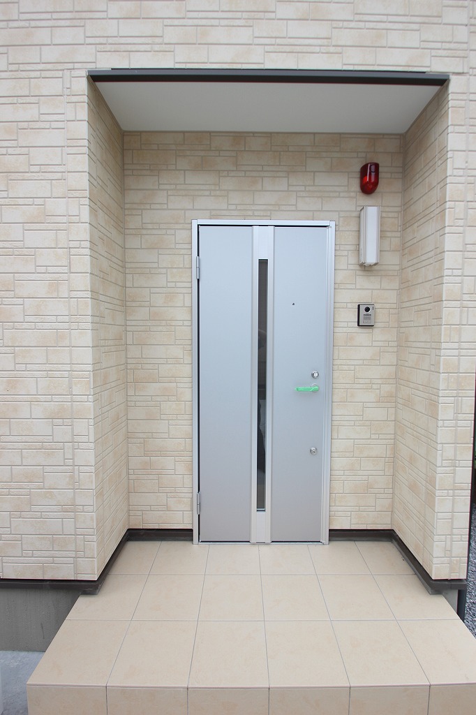 玄関扉はシルバーの玄関でシュッとして見えますね