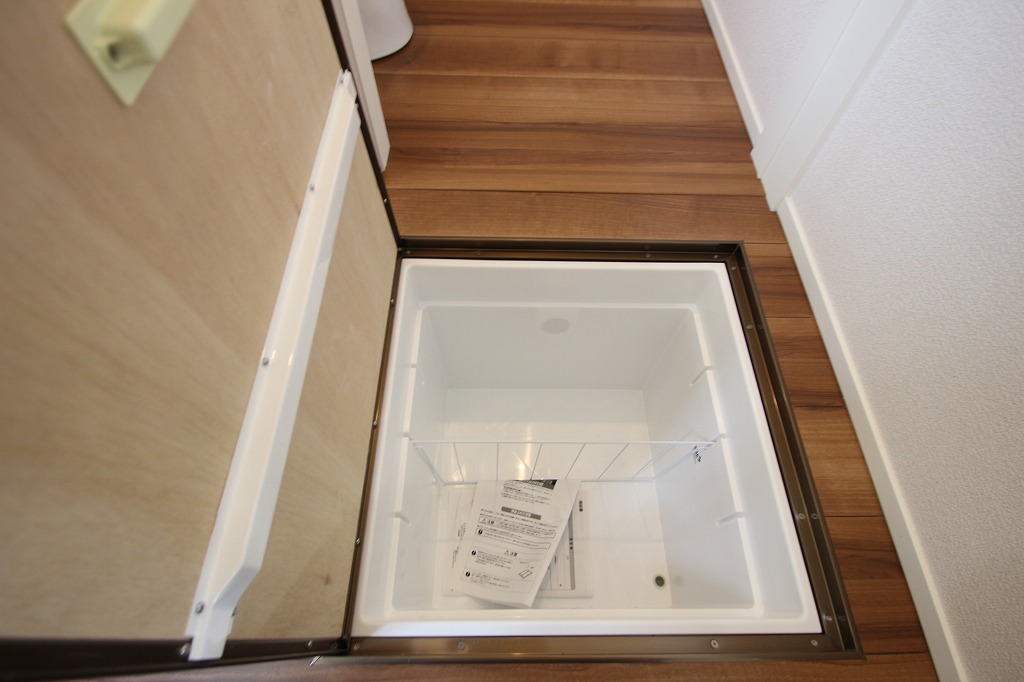 大分広いのでものを置いても狭くないですし、写真にある通り、床下収納もあるので買い置きした洗剤などを置いておくこともできますよ