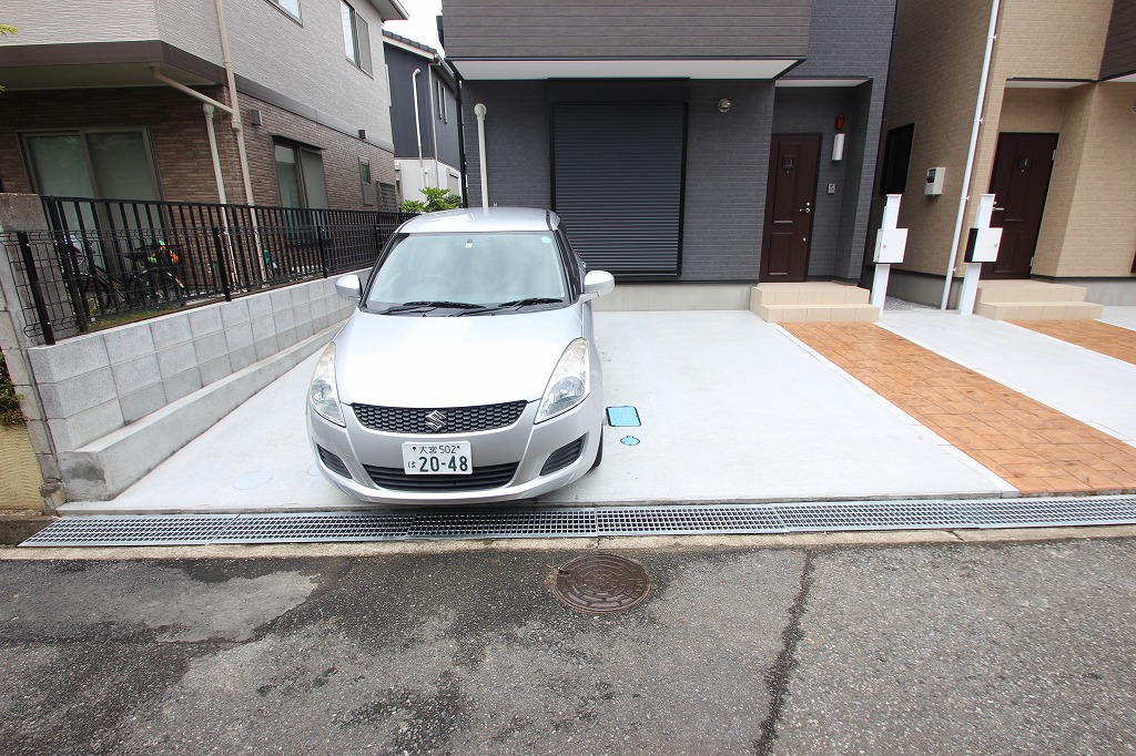 並列で2台ともおけますし、目の前の道も狭くないので停めやすいです