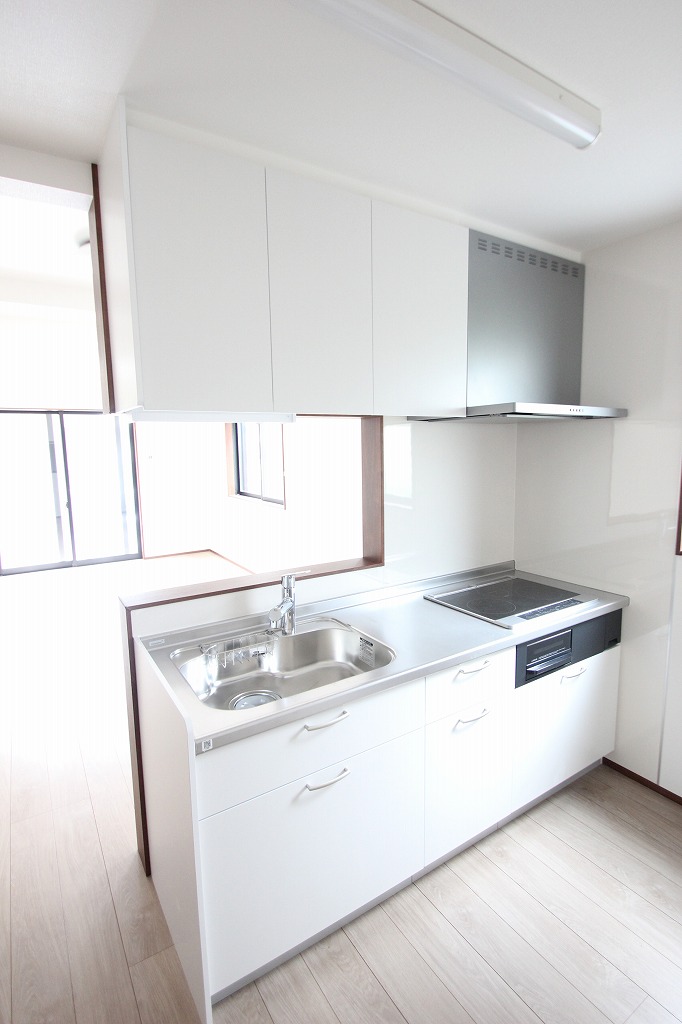 キッチンは上下に収納があり、広めのスペースのあるシステムキッチンになっています