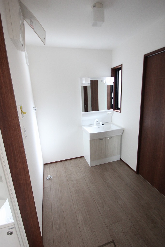 洗面所はとっても広く作られており、洗濯機をおいて家具などを配置しても十分すぎる広さがありますね