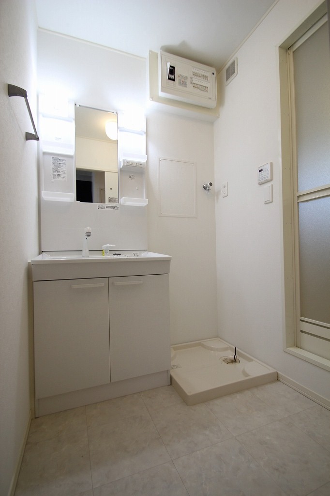 脱衣所あり、独立洗面台と室内洗濯機置き場!も1Kにしてはゆったりしていますね