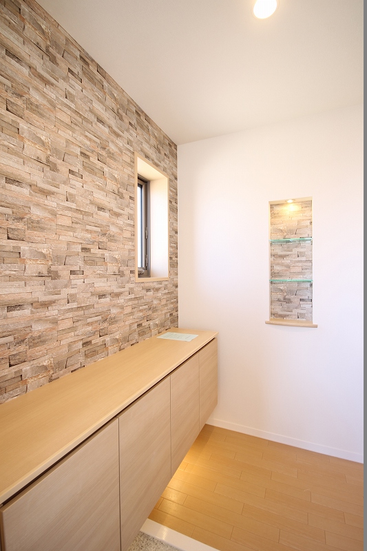 収納や前のちょっとした物を置けるスペースにも照明が付いておりますので、