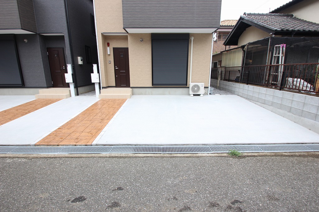 閑静な住宅街に佇む新築テラスハウス物件☆駐車場も2台完備で並列で止められるので複数台車をお持ちの方にはぴったりな物件です!2022-08-29