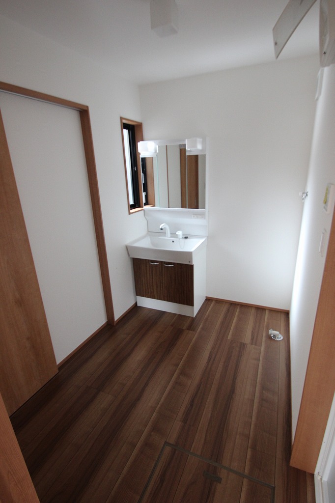 洗面脱衣所もこんな感じで大分広く作られており、洗濯機などの家電を置いても何をするにも困らないだけの広さがあります