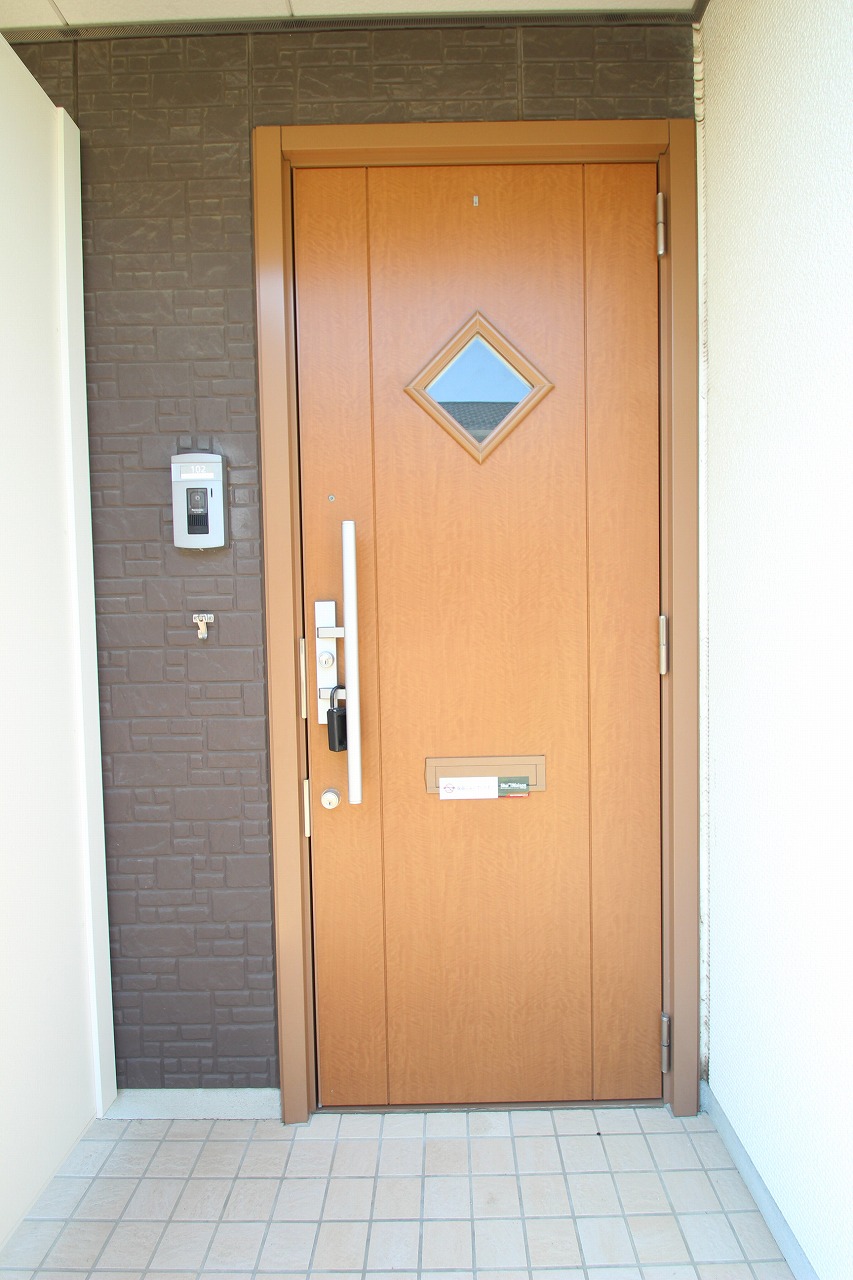 玄関扉はこんな感じの個人的に好きな色合いの扉ですね