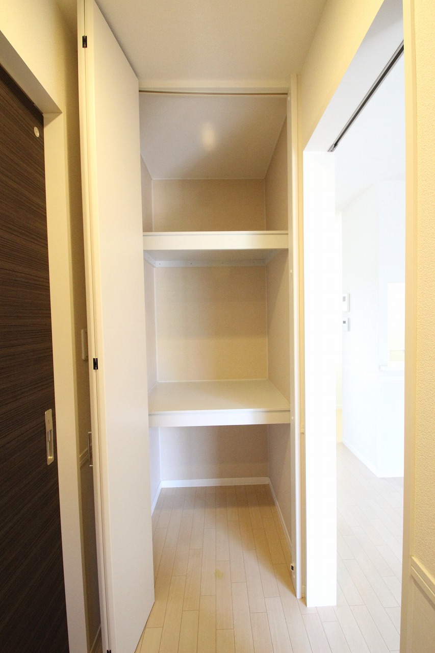 左側は玄関の収納と同じタイプとなっており、右側はコートなどをそのままかけておけるタイプのものになっております