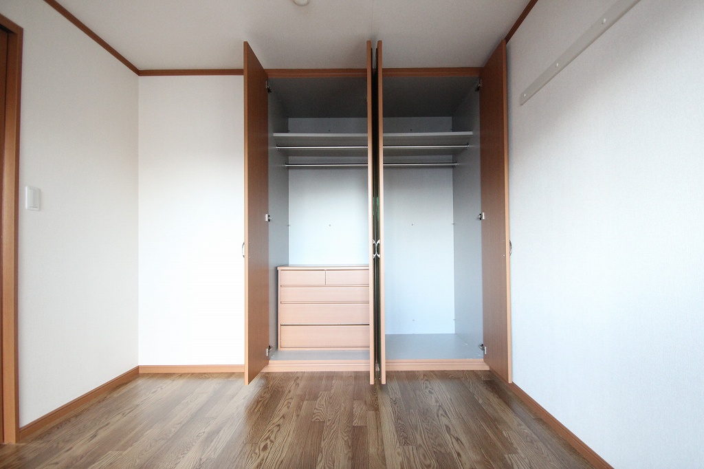また収納の中には衣装棚が入っておりまして洋服やタオルなんかを収納できます。