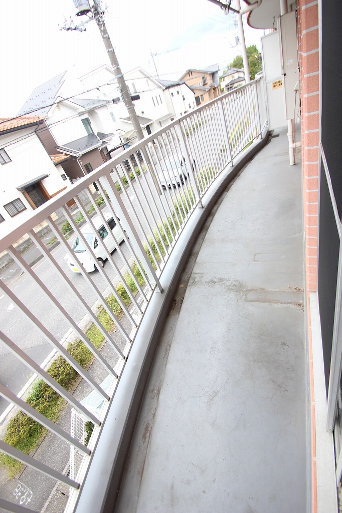 ベランダは横に広く目の前が道路なので日当たりも確保されているのは良いポイントですね