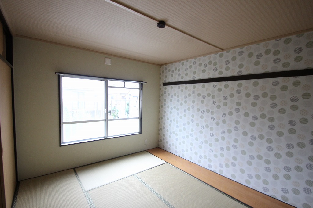 一番奥の和室は一面がアクセントクロスで和モダンな感じになっており、くつろぎの空間となっております