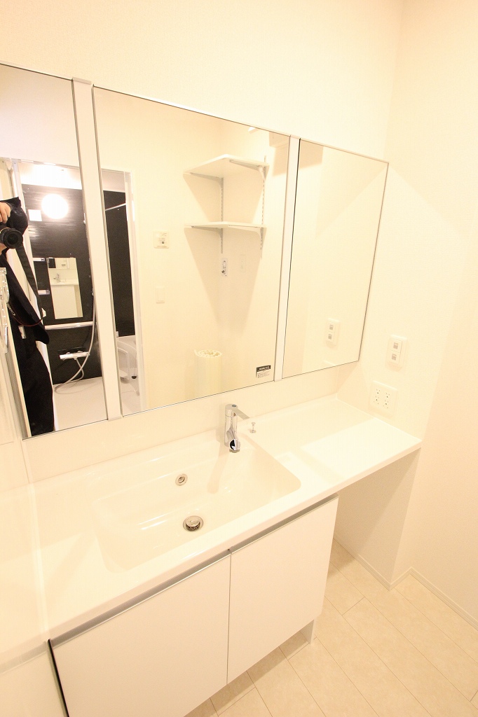 壁にはコンセントも4つもあるので電動シェーバーの充電などお風呂を出た後にすぐに使えるスペースがあるのは最高ですね