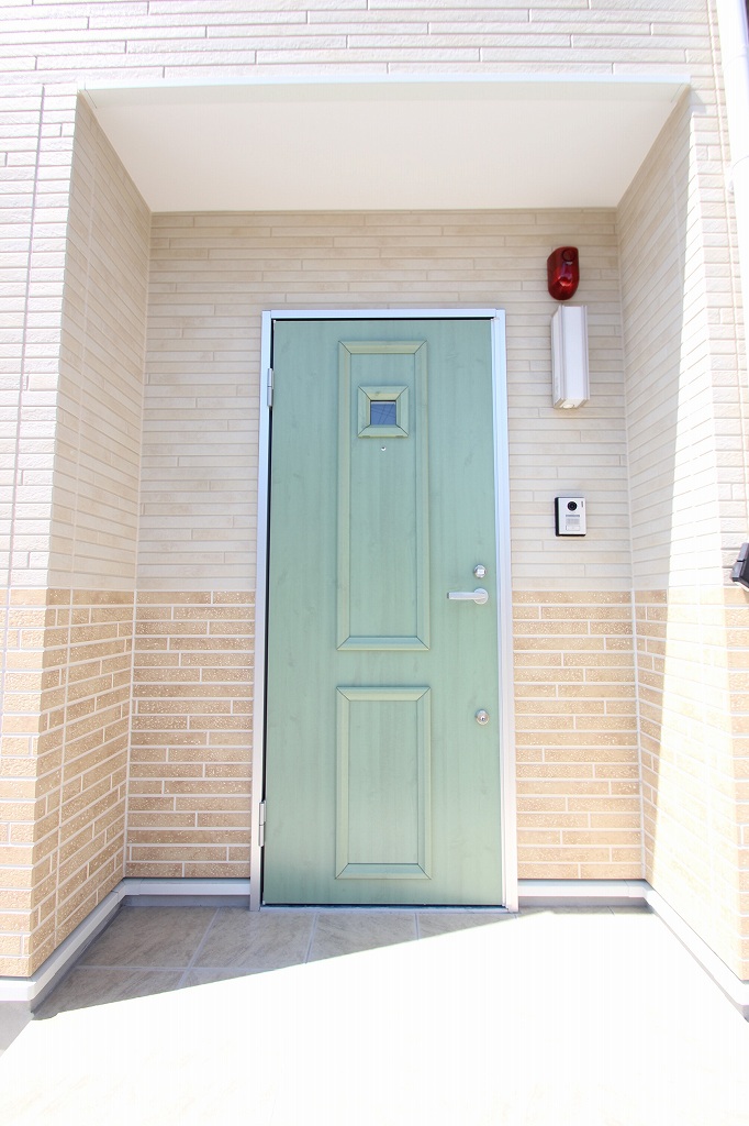 玄関は珍しい薄い緑色の扉で個人的に結構好きな色合いです